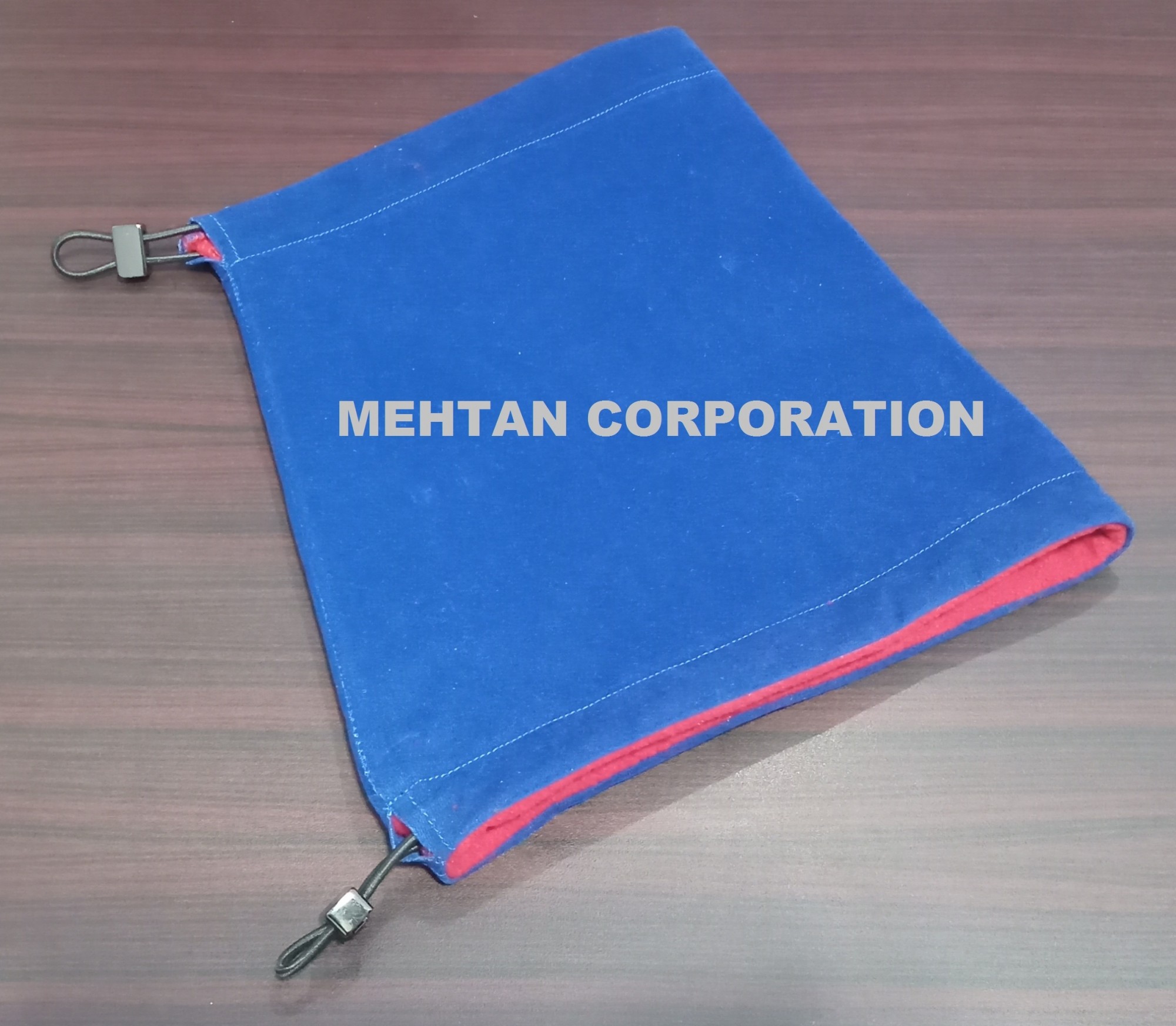 Made of velvet fabric with fleece linning to keep neck warm.